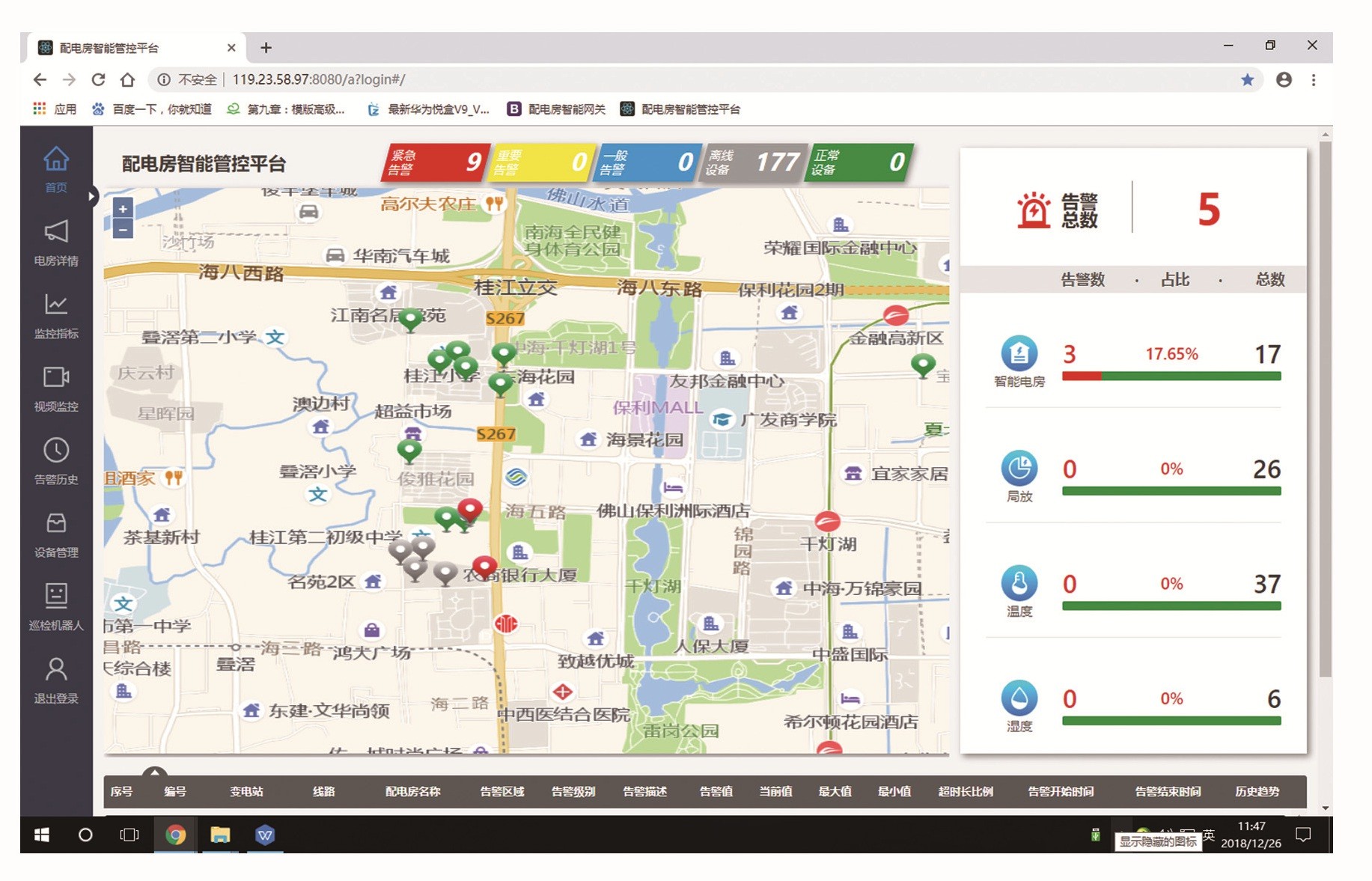 通過(guò)WEB客戶端應(yīng)用管理相關(guān)業(yè)務(wù)流程,點(diǎn)擊地圖選取管轄區(qū)域內(nèi)任一屬下的電房,進(jìn)入后通過(guò)圖形化方式顯示電房的實(shí)時(shí)監(jiān)控?cái)?shù)據(jù),提供控制按鈕及操作警示。增設(shè)外網(wǎng)網(wǎng)關(guān)或通過(guò)內(nèi)網(wǎng)手機(jī)卡后,可向相關(guān)管理人員的外網(wǎng)移動(dòng)終端或手機(jī)發(fā)送報(bào)警功能。